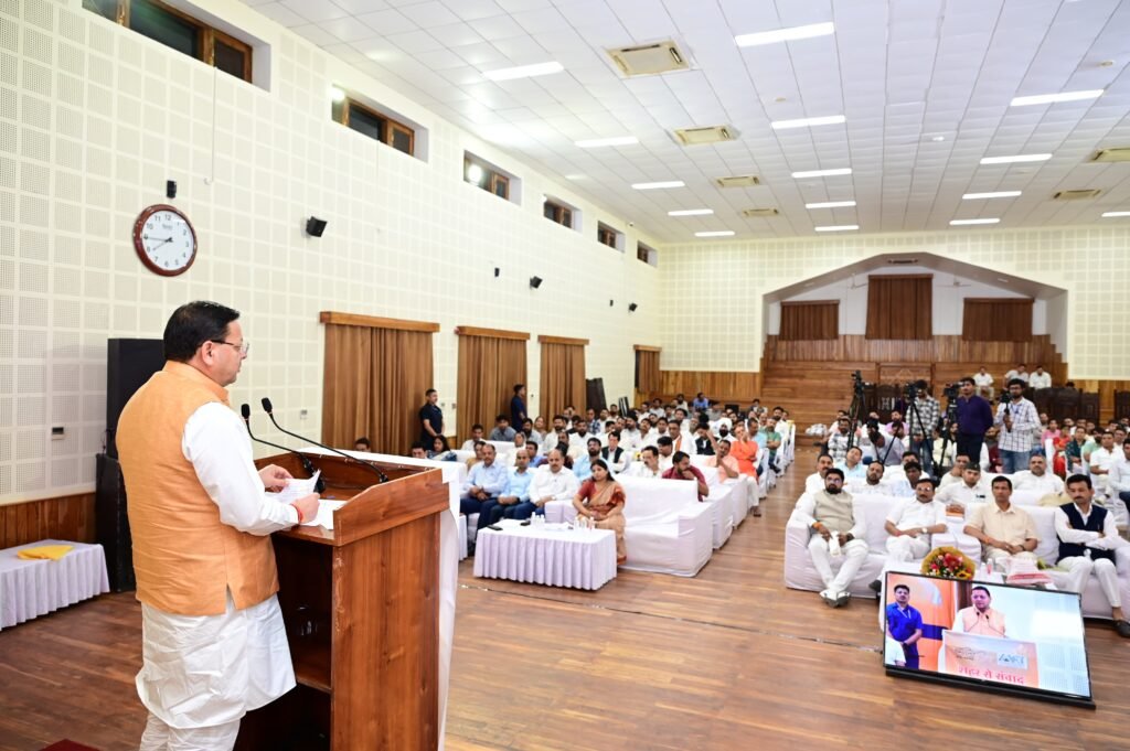 मुख्यमंत्री ने कहा कि हमने प्रदेश में एक सख्त भू-कानून भी लागू कर दिया है, जिससे राज्य के मूल स्वरूप के साथ खिलवाड़ करने वालों के खिलाफ सख्त कार्रवाई सुनिश्चित की जाएगी। इतना ही नहीं हमने जहां एक ओर राज्य में समान नागरिक संहिता कानून लागू कर एक समरस समाज के निर्माण की दिशा में मजबूत कदम बढ़ाया है। सख्त नकल कानून द्वारा नकल माफिया की रीढ़ तोड़ने का काम किया है, जिसके परिणामस्वरूप आज राज्य के 23 हजार से अधिक युवाओं को सरकारी नौकरी प्राप्त हुई है। हम भ्रष्टाचार रूपी दीमक को जड़ से समाप्त करने के लिए ‘ज़ीरो टॉलरेंस’ की नीति के तहत कार्य कर रहे हैं। इसी का परिणाम है कि पिछले तीन वर्षों में हमने भ्रष्टाचार में लिप्त करीब 200 से अधिक लोगों को जेल की सलाखों के पीछे पहुँचाया है। इस अवसर पर मेयर देहरादून सौरभ थपलियाल, सहित सभी नगर निगमों के मेयर, नगर पालिकाओं के अध्यक्ष, सचिव नितेश कुमार झा, नगर आयुक्त नमामि बंसल, शहरी विकास विभाग के अधिकारी तथा विभिन्न स्थानीय निकायों के 100 से अधिक जनप्रतिनिधि मौजूद रहे।