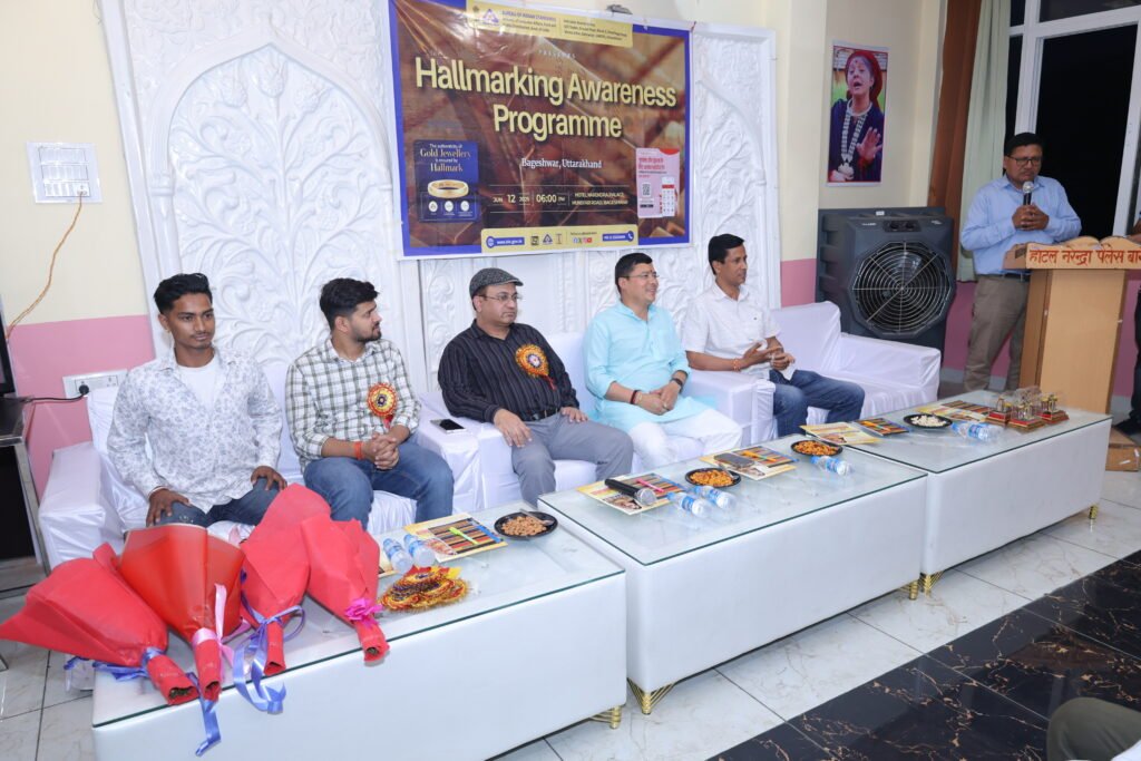 सौरभ कुमार चौरसिया सहायक निदेशक एवं श्रीकांत मिश्रा हॉलमार्क रिप्रजेंटेटिव, बीआईएस ने हॉलमार्किंग केंद्रों के संचालन, नए एचयूआईडी-आधारित हॉलमार्किंग प्रणाली और 14 कैरेट से 24 कैरेट तक की ज्वैलरी पर हॉलमार्किंग की अनिवार्यता पर विस्तृत चर्चा की। कार्यक्रम का शुभारंभ विधायक विधानसभा क्षेत्र कपकोट सुरेश गढ़िया,नगर पालिका परिषद बागेश्वर के अध्यक्ष सुरेश खेतवाल ने संयुक्त रूप से दीप प्रज्वलित कर किया। उन्होंने अपने संबोधन में उपभोक्ता जागरूकता और ज्वैलर्स की जिम्मेदारी पर जोर दिया, जिससे सोने की शुद्धता और विश्वास सुनिश्चित किया जा सके। उन्होंने कहा कि उपभोक्ता अपनी मेहनत की कमाई से बहुमूल्य धातु खरीदते हैं, इसलिए शुद्धता और गुणवत्ता की गारंटी के लिए हॉलमार्क युक्त आभूषण ही खरीदें। बीआईएस ने उपभोक्ताओं से आग्रह किया कि वे बीआईएस-चिह्नित उत्पादों की प्रामाणिकता सत्यापित करने के लिए बीआईएस केयर ऐप डाउनलोड करें, जो गूगल प्ले स्टोर और एप्पल स्टोर पर उपलब्ध है। इस अवसर पर स्वर्णकार संघ बागेश्वर के अध्यक्ष पारस वर्मा तथा जनपद के समस्त स्वर्णकार भी उपस्थित थे।साथ ही वृक्ष मित्र किसन सिंह मलडा ,और सभी प्रमुख ज्वैलर्स संघों के प्रतिनिधि भी कार्यक्रम में उपस्थित रहे। इस कार्यक्रम में बागेश्वर जिले के 90 से अधिक ज्वैलर्स व व्यापारियों ने भाग लिया और ठप्ै द्वारा दी गई महत्वपूर्ण जानकारी को सराहा।