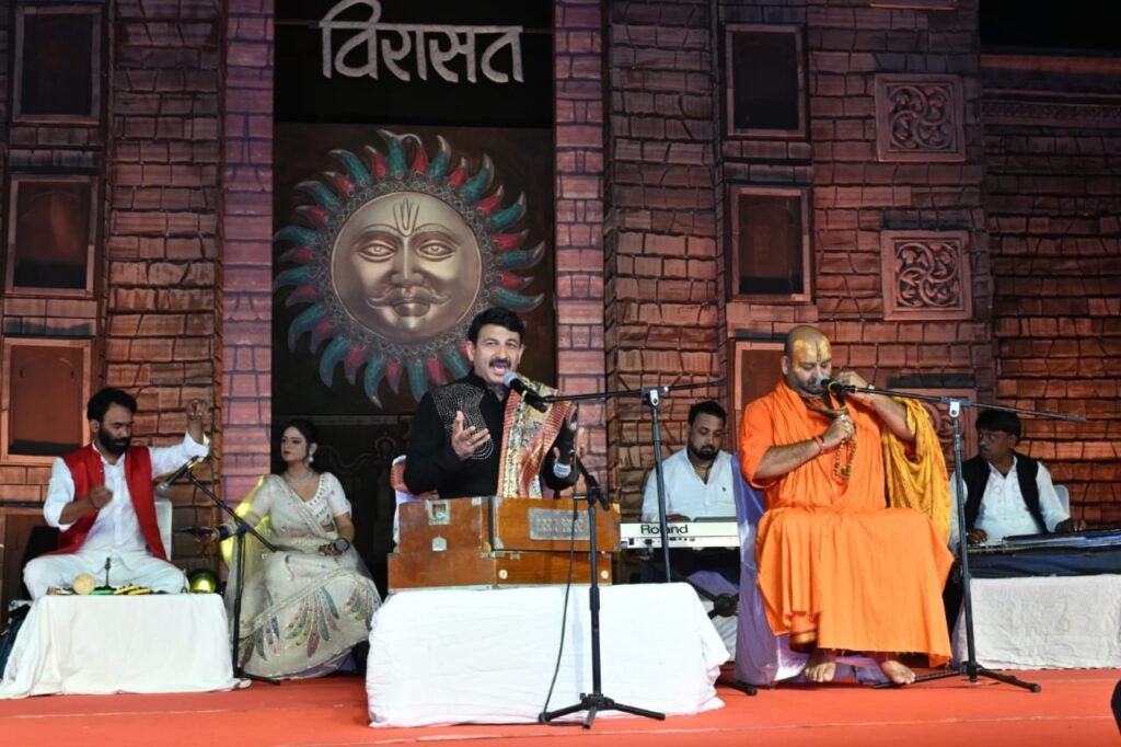 विरासत महोत्सव की शाही शाम में आज अंतिम दिन मशहूर अभिनेता,भोजपुरी गायक, राजनीतिज्ञ और सांसद मनोज तिवारी के गीतों ने विरासत की महफ़िल सजा डाली। मशहूर भोजपुरी गायक, अभिनेता, राजनेता व सांसद मनोज तिवारी के गीत और सुर की संध्या संगत में कुल नौ प्रतिभाशाली कलाकारों ने भाग लिया, जिनमें गायक और संगतकार शामिल रहे, उन्होंने एक जीवंत औभीर मधुर प्रस्तुति दी। गायकों में मनोज तिवारी मृदुल के साथ दिवेंद्र महाराज व सृष्टि सिन्हा का बहुत ही खूबसूरत साथ रहा प् जबकि संगतकारों में तबले पर दीपक सिंह, ढोलक पर मोती लाल शर्मा, बैंजो पर शंकर वर्मा, कीबोर्ड पर किशोर वत्स, ऑक्टापैड पर दीपक पाराशर तथा तालवाद्य/प्रकाशन पर प्रभुनाथ राय दारी रहे प् मनोज तिवारी ने अपनी प्रस्तुति की शुरुआत एक भक्ति वंदना से किया “निमिया की डाली मैया झूली झूली न“ उसके बाद “ए राजा जी ए करे त रहलबा जरूरी महूरत खूबसूरत हो“ गाया।