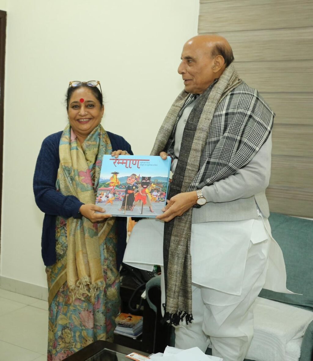 देहरादून,। उत्तराखंड विधानसभा अध्यक्ष ऋतु खण्डूडी भूषण ने नई दिल्ली स्थित शासकीय आवास पर देश के केंद्रीय रक्षा मंत्री राजनाथ सिंह से शिष्टाचार भेंट की। भेंट के दौरान विधानसभा अध्यक्ष ऋतु खण्डूडी भूषण ने उत्तराखंड के विश्वविख्यात लोकनाट्य रम्माण पर आधारित पुस्तक रक्षा मंत्री को भेंट की तथा इसके सांस्कृतिक महत्व, परंपरा और विस्तार पर विस्तार से चर्चा की।